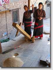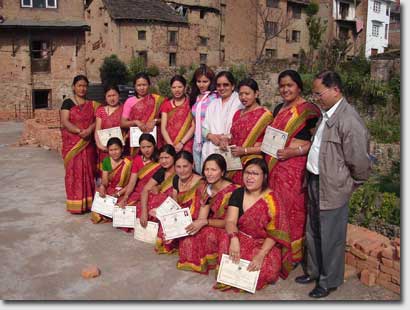 Even in November 2006 seven of the women had applied for a training seminar about management of small enterprises at the state-sponsored training centre in Kathmandu. The daily bus tickets as well as a contribution for eating out during the seminar - costs which had been too much for them - were covered by gtz/ udle (German society for technical cooperation/ urban development through local efforts) . An other 3-weeks-training about the actual bakery trade followed in February 2007 and was attended by 13 women in total. The necessary materials for the seminar were again sponsored by gtz/udle. |