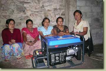 beginning of 2009. This uncertainty of power supply is quite a "desaster" for "our" bakery using an electric oven. The production of braed, cakes and pastries at fixed times cannot be guarantied, the regular customers give up and try to supply themselves alternatively. There is no regular work anymore. The bakery stuff made in gas-driven deep fryers is not yielding profit so the monthly income of the four women in fixed jobs decreased from about 20 Euro down to 6 Euro only. The people of Thambahal see only one way out of the dilemma. That is the procurement of a generator strong enough to at least partly bridge the power cuts. The costs for the fuel could be covered by the profit from the restaurant "Newa Lahana". However only a small portion of the total cost price is available as capital recourses of the people of Thambahal. I therefore decided on an additional financial support by Nepalhilfe Kirtipur. In April 2009 total 1.200 Euro were transferred to the account of the bakery, about 80% of the cost price for a generator which is suitable to operate one of the two stages of the bakery oven.