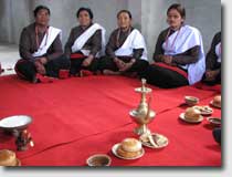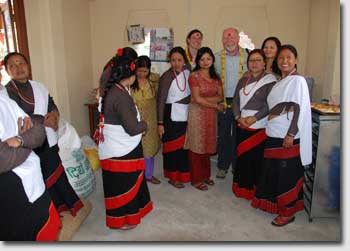 Strong rice wine was served with it and "Nepal tea", prepared with milk and deliciously refined with masala spices. The three untypical chairs -specially provided for the three European guests - naturally stayed unused much to the delight of the women. |