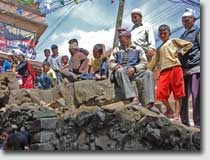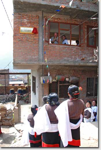 The Kirtipurians insisted on taking occasion of my visit of April 2008 to officially celebrate the inauguration of the new bakery, although the daily baking had provisionally started already immediately after completion of the building in December 2007. It looked as if the whole inhabitants of the Thambahal tole were present when I was escorted to the bakery in a traditional Newar-procession. |