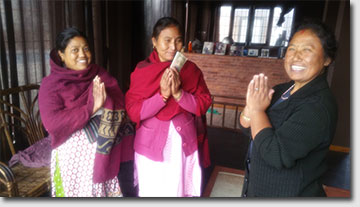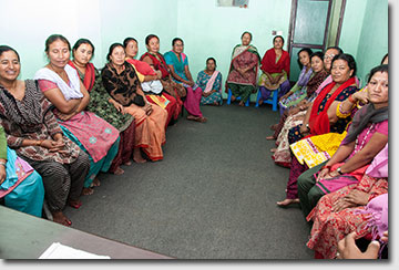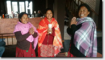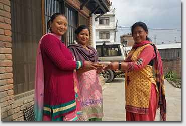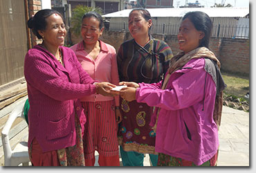 The first women are given their loan in December 2015 by Lalita Maharjan. |