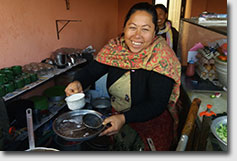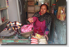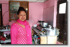 Due to the extremely high rate of unemployment in Nepal many women are forced to contribute to the livelihood of their families. In many families this is not just the consequence of the patriarchal structures in the Nepalese society which very often make western people being amazed about many inactive men to be seen everywhere. Instead many families this is the result of real need and working of the women is vital. Everywhere in the villages the visitor of Nepal can observe that women are not shy to take over work in the lowest and most difficult and heavy jobs. If one had seen a petite woman just recently sitting at one of the looms of the manifold carpet manufactories, one can meet the same woman next time on a construction site, where she is doing unimaginably hard labor as the bearer of stones, sand and other construction materials. Next time one may find her near the quarry where she is producing by hand in heavy labour gravel from bigger stones. During the harvest it's again the women who are carrying the rice in heavy sacks, who are drying the rice in the sun and preparing it. Even after years of visiting Nepal for me it is hard to understand how these women, who normally are mothers as well, can arrange sending their children to school always clean and tidy. Any help that you can get these women, is thus also an effective indirect help for the children! I have accepted the proposal of Lalita Maharjan (see photo) to give a new chance for selected disadvantaged Newar-women by providing a microcredit for the establishing of a small business start-up for livelihood.