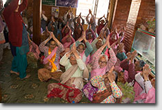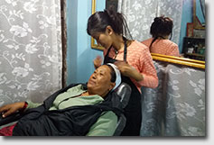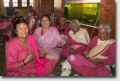 A selfless business was started by Hari Devi Maharjan. She uses the credit to support the very old single people of the place and give them meaningful employment. Most of the over 80s, mostly women, gather in a temple building almost every day to sing, dance, to run gymnastics and to entertain. With the money Hari devi buys cotton which is used by the seniors to produce wicks for the many used oil lamps |