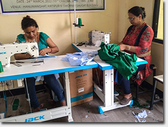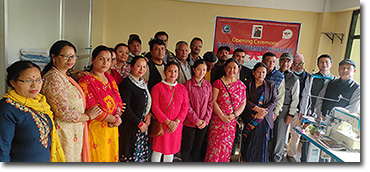 After a difficult search for a suitable rental property for the workshop that met all the requirements for technical equipment, but also for the future staff, and also after overcoming many a bureaucratic hurdle, suitable rooms were finally found in a new building in Panga, Hanuman Ghat, in February 2022. One of the positive aspects of this selection is the fact that the building is in close proximity to the "formal" office of the PEP/SSP Committee Chairwoman Ms. Nanda Kumari Maharjan, my key aide and co-founder of the WEP, This once again underlines the solidarity of the charity projects under the patronage of Nepalhilfe Kirtipur. On March 24, 2022, the "Women Empowering Program Kirtipur, WEP" was inaugurated by the Mayor of Kirtipur Municipality, Mr. Ramesh Maharjan. Traditionally, the "Red Ribbon" was cut by him, assisted by Deputy Mayor Mrs. Saraswoti Khadga Rijal. |